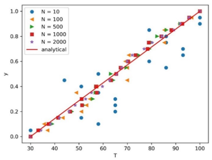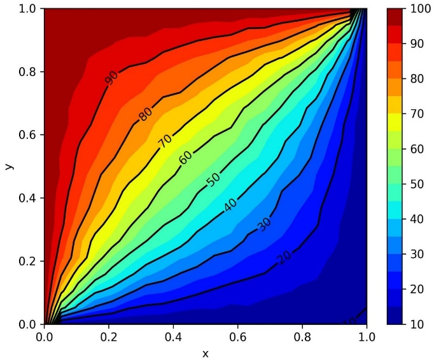 The developed Python program serves as a effective tool for researchers to understand the application of statistical methods such as MC simulations and provides a basis for developing more complex models. While the study reveals the potential of this approach for solving heat conduction problems, it is important to note that the method’s computational cost grows with grid refinement and the number of random walks, which may limit its scalability for larger problems. The technique also assumes steady-state conditions, restraining its applicability to transient heat conduction problems. Future research could focus on optimizing the random walk algorithm to enhance convergence rates, exploring parallelization strategies to reduce the runtime, and extending the method to handle more complex geometries and transient heat conduction problems. Additionally, further validation against the experimental data and comparison with other numerical methods will strengthen the robustness of this approach.
