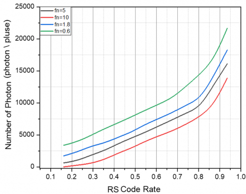 Figure 6. The correlation between the number of photons and the rate of Reed-Solomon coding at various adjusted bandwidths