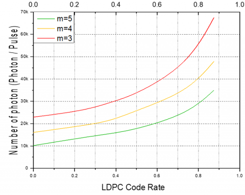 Figure 8. A comparison between the amount of photons and the LDPC code rate at various code levels