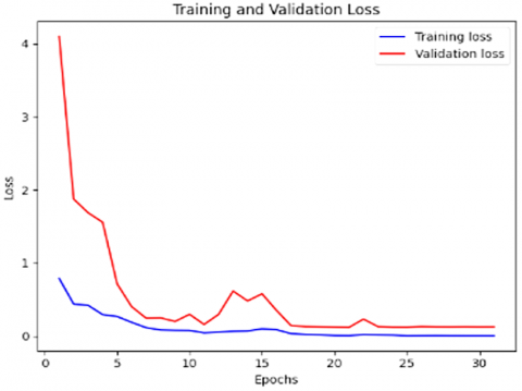 Figure 18 shows the stability of the proposed model at a learning rate of 0.00004 after 27 epochs. Moreover, it can be noted that the problem of overfitting and underfitting has been eliminated in our proposed structure. The AUC is applicable since it summarizes the model's class discrimination across all thresholds in a single value. The AUC for our deepfake detection model is calculated to improve the reliability of our findings. We compute the AUC and evaluate our model using sci-kit-learn's "roc_auc_score" function [59]. The model scores 0.9154 on the test dataset.