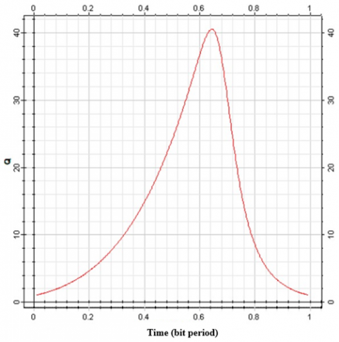 Threshold value with DWDM effect: The threshold value 0.0175413 represents the decision limits for bit detection in the optical network. A low threshold value indicates that the system has high sensitivity to signal strength levels, as shown in Figure 5, enabling it to detect even weak signals or signals with low energy. A low threshold can be beneficial in achieving accurate bit detection and reducing errors, especially in a DWDM system with several channels nearby.