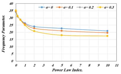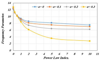 (3) For uneven-I porous-FGB, the first three frequency parameter decrease slightly when the porosity index rises at any power-law index and any supporting types. Also, the influence of power-law index on frequency parameters appear sharply and take the same profile in first, second and third natural frequency.
