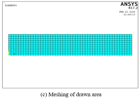 4. The drawing area is meshing using the element “SHELL281” as shown in Figure 5(c) considering the convergence criteria of element size.