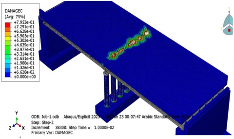 After reviewing the results and selecting column 1 as the weakest and column 5 as the strongest, a semi-realistic bridge is simulated using the characteristics of the Bridge in the center of Basra Province as shown in the Figure 1, employing the modeled columns from the previous section (preferably columns 1 and 5) as the bridge columns. Subsequently, the explosive load is applied at a distance of 1 meter from the columns, along with the axial load resulting from the weight on the bridge, and the results from the analyses are examined and compared.