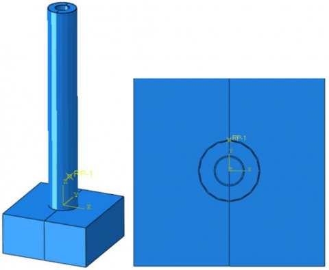 Figure 3. Geometry of the inner and outer steel tubes and the internal concrete section and foundation in validation model