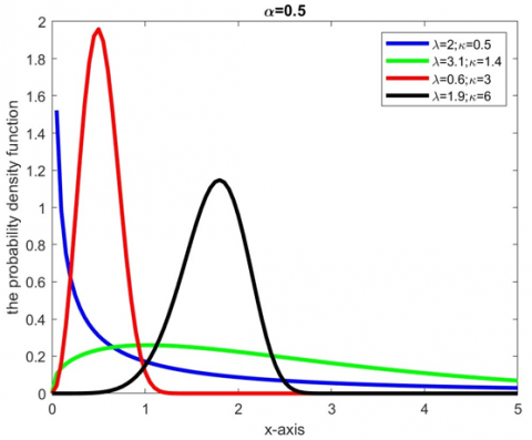 $M_x(t)=E\left(e^{t x}\right)=\int_0^{\infty} e^{t x} f(x, \alpha, \lambda) d x$ (19)