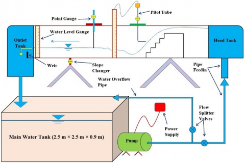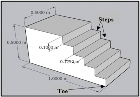 Table 1 lists the dimensions for each parameter that affect the flow energy dissipation over stepped spillway.
