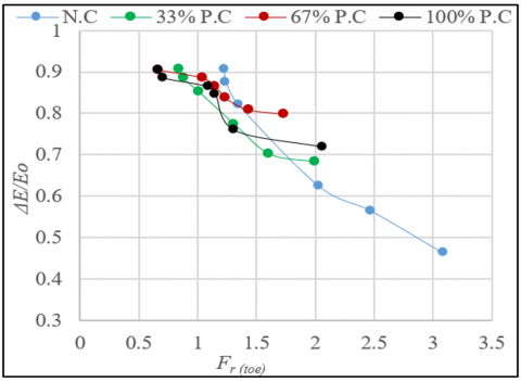 $\frac{\Delta E}{E_o}=\frac{\left(\frac{y_o}{y_c}\right)^{-0.039} \times\left(\frac{y_1}{y_c}\right)^{0.267} \times\left(F_{r(\text { toe })}\right)^{-0.07}}{1.062^{\left(L_{p . c}\right)}}$ (4)
