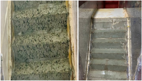 Figure 6. Normal and porous concrete steps of the stepped spillway model
