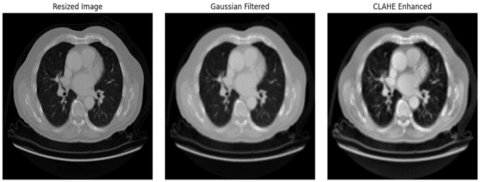 Image preprocessing defines the data preparation phase, where the system converts the raw CT images into an appropriate format for further processing. This stage follows a sequence of processes such as noise filtering, image resizing, and contrast enhancement or background elimination. In the noise filtering step, a Gaussian filter was applied to the images to eliminate the noise or unwanted random variations within each image. The Gaussian filter removes the noise attributes and replaces them with the average value of nearby or surrounding attributes, which is estimated by Gaussian distribution. The mathematical formulation of the Gaussian filter is expressed in Eq. (1):