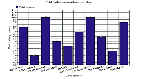 The two vectors' distances need to be measured in the rating matrix such as way that the intersection of filled elements of two user’s vectors like filling the elements using both the user vectors to identify the similarity that is compared to find the similarities and the similarity measure's exponential natures generates the coefficient of similarity for the smooth function. The similarity measure has the issues that do not have the balanced nature that results from the various intersection of filled elements among vectors that create the biased similarity coefficients. It is represented in Figure 1, where user one and user three are considered the same users with a similarity coefficient. The two users are not assumed as completely identical since the two users have one filled element alone in general, and the user 3 has another filled element that is not intersected with user 1’s filled elements. Whereas, since many intersecting filled elements are nearer in value, user three and user 5 are the same users in the real world. Hence user 3's empty element is 0.89 when considering the similar-users are not the optimum rating. Another novel similarity measure is introduced to solve this issue the ESMs provide importance to the number of filled elements among two vectors. Eq. (3) is used in Figure 1. Since user three does not include the ratings of similar items like user one, which provides fewer intersecting elements, user one and user 3 are entirely dissimilar. The similarity measure of novel normalized exponential is represented by Eq. (3). Multi-criteria decision-making methods ensure accurate and consistent weighting, which is then used for selecting cloud service providers (see Table 3).