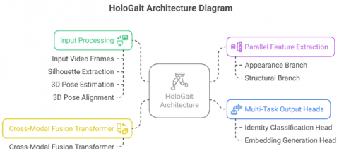 This paper introduces HoloGait, a multi-modal gait recognition method designed to manage these problems. HoloGait combines appearance information from silhouettes with structure information from 3D skeletal poses, using strengths from each study [3]. Silhouettes provide detailed body shape and general motion cues, while skeletal data naturally offer consistency across viewpoints. By merging these sources, HoloGait creates a unified representation of gait that remains stable despite viewpoint variations and occlusions. At its core, HoloGait uses a hybrid model mixing graph and transformer layers. Skeletal data are first structured as graphs, connecting body joints, and processed using GCN layers to learn local joint movements and interactions. Because typical GCNs have limited reach, multi-head attention modules are integrated, capturing global temporal patterns and distant joint relationships [13-15]. This combination helps to identify important movements and their timing clearly, capturing details missed by simpler models. Additionally, HoloGait employs a 3D pose alignment method, converting all input skeletons to a standard, fixed viewpoint (like frontal view) before processing. Such alignment removes viewpoint differences from the data itself, simplifying the recognition process and allowing focus on distinctive gait features [3]. Finally, the model uses multi-task learning by training simultaneously on gait identification and auxiliary tasks like attribute recognition. Multi-task training generally leads to richer, more balanced representations, improving performance across diverse conditions and viewpoints [16].