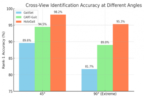 Cross-view gait recognition remains challenging due to variations in viewing angles, temporal misalignment, occlusions, and appearance changes, which significantly reduce the effectiveness of current biometric systems. To address these challenges, this paper introduces HoloGait, a multi-modal framework designed for robust cross view gait recognition. HoloGait fuses complementary information from appearance-based silhouettes and structural 3D skeletal poses, leveraging the distinct advantages of each modality. Central to the approach is a rigorous 3D pose alignment module that normalizes skeletal data to a canonical view, significantly minimizing viewpoint dependency. Additionally, the structural information from 3D poses is explicitly modeled using an adaptive graph convolutional network (GCN), capturing intricate joint dynamics and interactions. Subsequently, a transformer-based fusion module integrates silhouette and skeletal features, dynamically exchanging spatial-temporal cues between the two modalities. A multi-task objective (identity classification + triplet loss) further enhances discriminative capabilities, producing embeddings resilient to occlusion and temporal inconsistencies. Experiments on the TUM GAID dataset using a strict cross view protocol—training on 0° and 45° views and testing on 90°—demonstrate that HoloGait achieves substantial performance improvements. Notably, HoloGait attains a Rank-1 accuracy of 96.8%, outperforming recent methods such as CART-Gait by 4.7% and GaitSet by 10.4%, thus clearly establishing state-of-the-art performance. These advancements confirm HoloGait’s capability to provide comprehensive, reliable, and accurate gait recognition suitable for practical biometric identification tasks under realistic conditions.