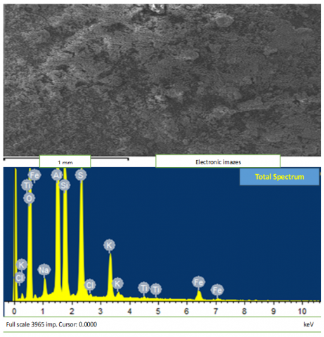 Figure 3. Electronic image of the sample and energy spectra of the elements included in the composition of the rock