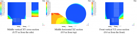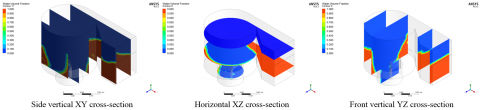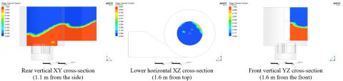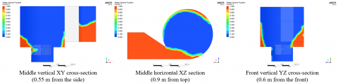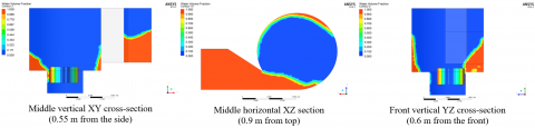 Figure 9. Water volume distribution of the vortex chamber at 75o blade angle (various cress-sections)