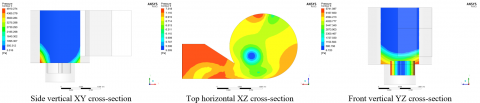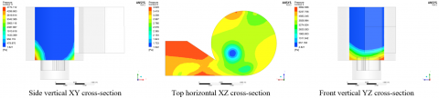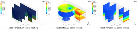 Figure 12. Pressure distribution of the vortex chamber at 75° blade angle (various cross-sections)