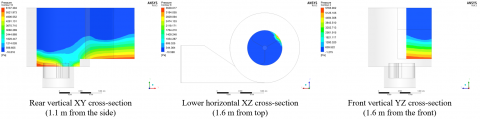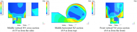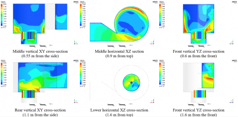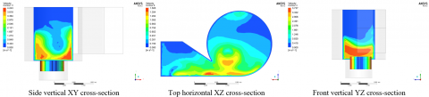 Figure 6. Velocity distribution of the vortex chamber at 75° blade angle (various cross-sections)