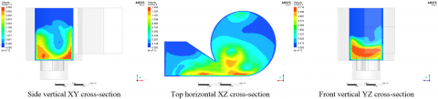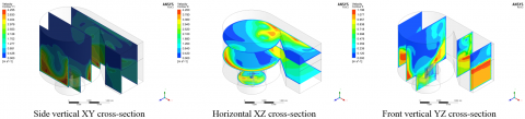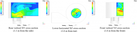 Figure 7. Velocity distribution of the vortex chamber at 90° blade angle (various cross-sections)