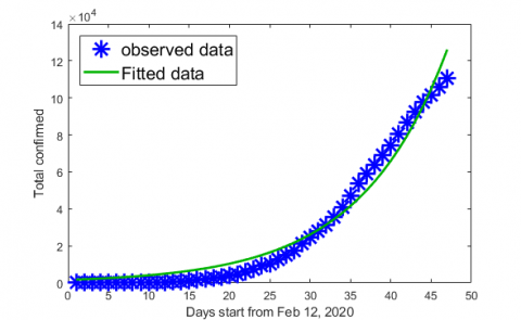 The situation in Spain is quite similar to the Italy scenario. At Feb 15, Spain reported 2 cases, as of Apr 01, there had been 104118. The fitted collected data to the given exponential model is shown in Figure 3.