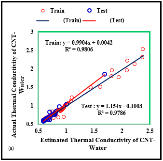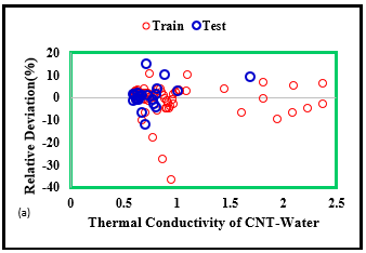 A research was conducted by Ding et al in which they researched on CNT nanofluids and the increase of convection heat transfer. They did the experiment under constant heat flow and laminar regime circumstances and they found that using this nanofluid with the concentration of 0.5 % wt CNT brought about 350 % enhancement in heat transfer rate at Re=800 [38]. Wang et al by utilizing 0.05 % and 0.24 % volume concentration of CNT/water nanofluid saw that 70 % and 190 % heat exchange improvement was acquired in a flat cylinder when Re number was equal to 120. A few investigations on finless heat exchangers were carried out in order to find Nusselt number of shell side [39]. A few relationships were derived by Alimoradi et al. [40], to estimate the Nusselt number of these sort of heat exchanger. According to the literature review, by using size and volume fraction of solid phase in addition to temperature accurate predictive models are achievable for a single nanofluid [41-45]. In this article, the data were gathered from different studies [46-50] to achieve a comprehensive model applicable in various operating conditions. The present study estimates the amount of the thermal conductivity of a CNT/Water system by utilizing three methods of soft computing techniques like MLP-ANN, ANFIS, LSSVM, and RBF-ANN.