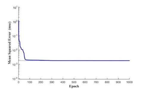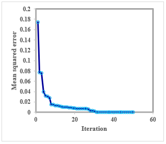 Figure 6. The performance of the LM algorithm according to MSE in different iterations for the RBF-ANN