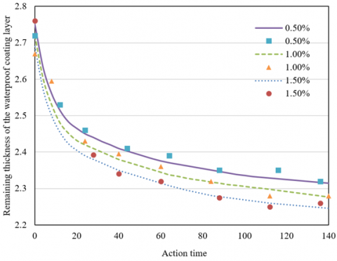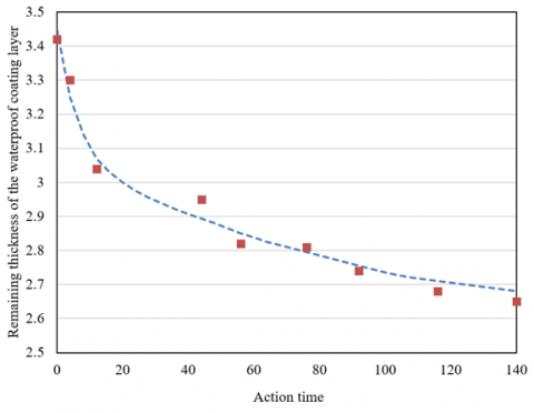 Figure 5. The change of the remaining thickness of waterproof coating layer over time