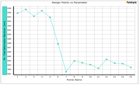Using OSFD scheme, the maximum deformation is observed for design point number 12 (702.81 mm) and minimum deformation is observed for design point number ten (702.81mm) as shown in Figure 9. The dimensions corresponding to the design point number 12 is as follows: