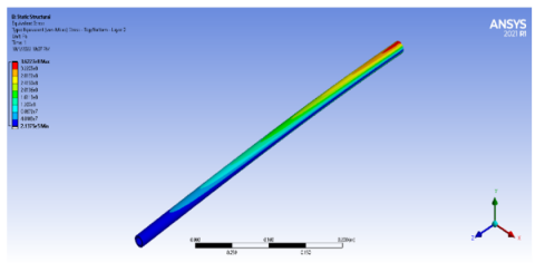 The static processor simulates the stresses and deformations that get on the pipe by applying the layers arrangement and adding loads 100 N to it.