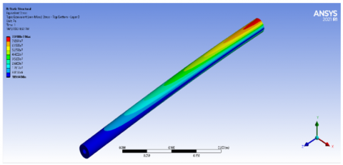 Where the layers were divided in terms of the angle of rotation of the layer, and after the process of arranging the layers, a force was added to the edge of the pipe by 100 N with the negative Y axis. A constant force must be applied to the surfaces to make them a source for comparison, as the expected force acting on the conditioning pipe reaches 100 N, which is sufficient to see the stresses and deformations and compare them with the other end, which was fixed to see the greatest stress that can be gotten. Because of the effect of the conditioning gas inside the tube, its reaction force is almost non-existent, and because the study was based on a program that simulates deformations and stresses, it was necessary to focus on the matter. As for the limitation used in this paper, it was neglected the impact coming from the gas used in the cooling system. As well as the vertical and horizontal twists, that occur in the arrangement of the cooling system pipes.