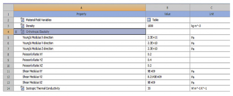 The layers textures were obtained through the library of materials in the ANSYS program and added them to the processor, which arranges these layers in a controlled geometric shape, see Table 2 and Figures 2 and 3. The type element was tetrahedron because the shape is cylinder to give more quality to mesh, see Figure 4.