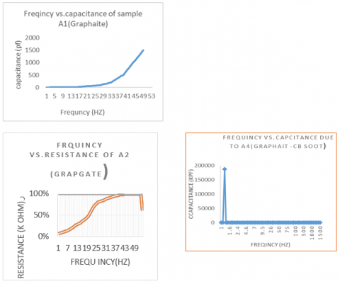 While Figure 10 shows the variations in the resistance and capacitance curves between graphite and the graphite-carbon soot composite demonstrate how the impurities and structural irregularities of carbon soot affect the anode material's electrical characteristics. This comparison emphasizes how carbon soot must be treated and purified in order to improve battery applications' performance.