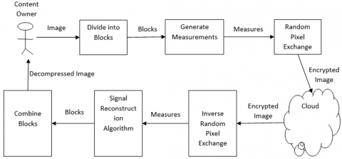 Compression sensing has its significance as found in the literature. Wang et al. [2] explored it for securely transferring medical images over Internet. Motivated by modern tele-medicine scenario, their method named tele-medical image compression technique is found to be useful for confidential information sharing. Hsieh et al. [3] proposed a cloud-assisted data gathering mechanism based on compressive sensing. Hu et al. [5] investigated on privacy preserving image outsourcing to public cloud based on CS technique. It has mechanism to reconstruct images without revealing identity. They intended to improve it to cater to the needs of other signal processing applications. Yu et al. [6] proposed a method for parallel encryption and compression based on chaotic measurement matrix and sequence generator. Thus they derived cryptographic characteristics from chaotic signals in order to improve security and transmission efficiency. Usama and Zakaria [7] also studied chaos-based approach for parallel encryption and compression technique. Their empirical study used Hadoop MapReduce model for implementation that utilised Tent Map and Piece-wise Linear Chaotic Map (PWLM) for infinite real number precision.