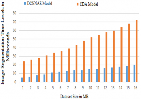 Image segmentation is a central subject in image and computer vision processing, including scene interpretation, medical image analysis, robotic perception, video monitoring, enhanced reality and compression. Different technologies have been applied in the literature for image segmentation. Recently there has been a large number of projects aimed at developing image-segmentation approaches using deep learning models because of the success of deep learning models in a wide variety of vision applications. The segmentation of images leads to more granular knowledge on the structure of an image and hence an enhancement of the object detection principle. The proposed model segmentation time levels are contrasted with the existing model and the time levels are indicated in Figure 5.