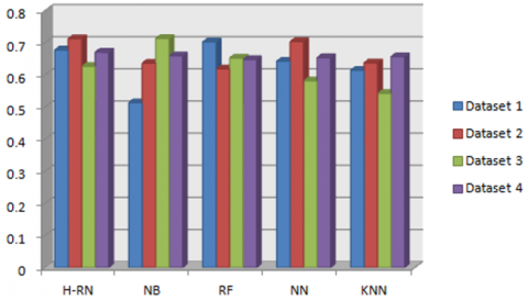 The complexity of H-RN gives good results for N > 10000, while the complexity of KNN is low for N < 10000, knowing that the size of the datasets 1,2, and 4 of our study is greater than 10000. The complexity of RF is lower than our algorithm, but with a slight difference, as for NB, it has the same complexity with H-RN. Therefore, we can conclude that our algorithm can be used in practice because it is of polynomial complexity, efficient and very fast.