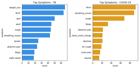 Figure 1. Top symptoms per disease. (a)Tuberculosis. (b) COVID-19