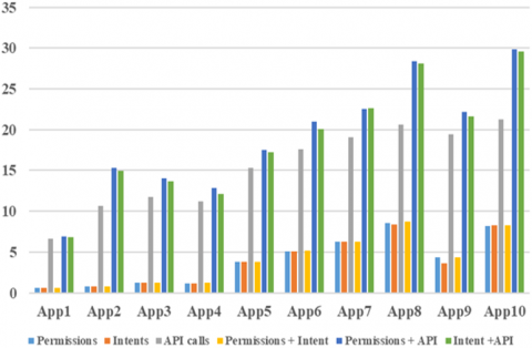 Figures 5 and 7 also confirm that the process of extracting features from the source code is more complicated than from the manifest file. The obtained results in Table 3 as well support the fact that the permission and intent features from the manifest file need less time than API calls from the source code. The computational effort required for analyzing system calls can vary based on factors such as app execution duration, the number of system calls made, and the complexity of the interactions. Profiling dynamic features (system calls) can potentially be more computationally intensive than compared to profiling static features due to the reasons mentioned in Section 4.3.3.