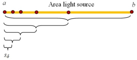 Here, δ represents a variable determining the extent of a section that originates from the distance between two points, denoted as a and b (referring to the dimensions of the light source, with a<b).
