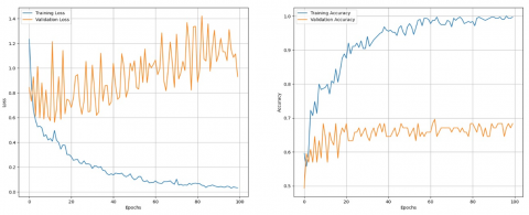 The graphs of training & validation loss and training & validation accuracy of models VGG 19, ResNet50 and Inception V3 are depicted in Figures 10, 11 and 12 respectively. A statistical significance test is conducted in this case also. The null hypothesis and alternate hypothesis are formulated as follows:
