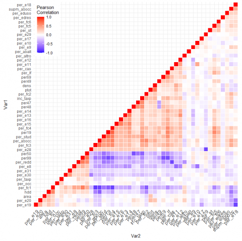 Regarding to the building geometry, the average surface of occupied dwellings is significant, but at contrary is negatively correlated with the electric consumption, as it is for the average age of buildings.