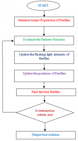 During the past decade, nature inspired metaheuristic algorithms such as Firefly Algorithm (FA), Genetic Algorithm (GA), Particle Swarm Optimization (PSO) and Ant Colony Optimization (ACO) are mainly used algorithms for optimization [5]. These algorithms have been very successful because of flexibility, simplicity, local optima avoidance and derivation free mechanism. Among various metaheuristics algorithms, FA is a bio-inspired behavior of firefly insect. They communicate with each other by emitting lights from their bodies and changing intensity accordingly. The efficacy of FA depends two major parameters such as light intensity and attractiveness between fireflies [28]. Flashing light intensity changes from each resource according to the brightness of the firefly, which is represented and calculated with a kind of fitness function. Attractiveness of each firefly is calculated using Eq. (11) [28].
