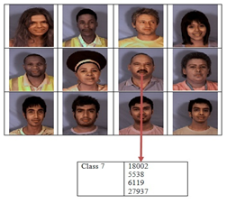Table 2 shows that each facial image is represented by a unique and small size feature column. This small size features column makes the extraction process time efficiently short. According to Table 2, the average time of the feature extraction process for one image is 0.06seconds. Thus, for 1000 faces, the feature extraction process will require one minute, which is remarkably a short processing time. All images' facial features are then arranged in a matrix such that each image is represented by a column of four features as shown in Table 3.