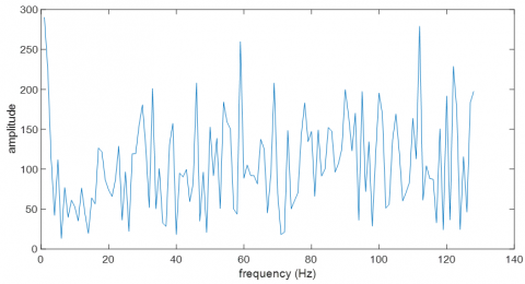 In the EEG amplitude spectrum of the control subject, two main components at origin and 25 Hz take place with their high amplitudes (approximately 1180 and 650 units). The components terminate at around 55 Hz. The most notable feature in the EEG amplitude spectrum of the alcoholic subject is the spreading of the components to the entire frequency plane in large numbers. In addition, the amplitudes of the components are much lower than that of normal (maximum 280 units). Briefly, the normal sign is a regular sign with a bandwidth of about 50 Hz, while the alcoholic sign is a complex spectrum that spreads to the whole plane (Figure 4).
