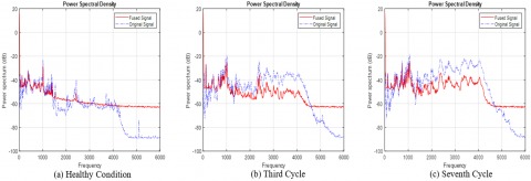 In the presence of damaged sensor, the fused signal can detect the frequency components between 2-4 kHz in each aging cycle. Thus, this property renders FD possible.