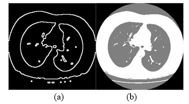 Figure 5. An example of applying Otsu algorithm on lung image (a) Original image, (b) Otsu output sample