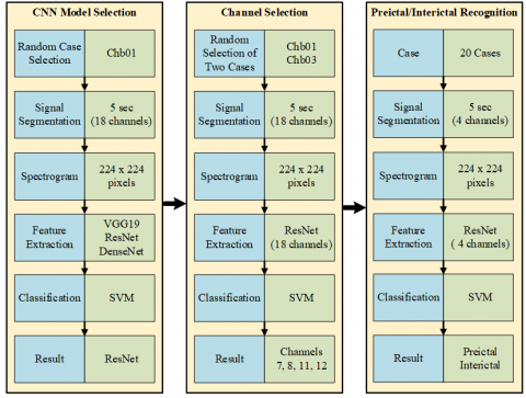 The rest of the study is organized as follows: Chapter 2 provides fundamental information on the selection of preictal/interictal activities, CNN models, performance evaluation criteria, and data sets, Chapter 3 contains the experimental results, Chapter 4 presents the discussion of findings, and Section 5 presents the conclusion of the study.