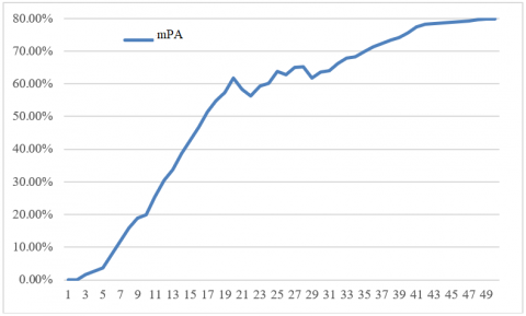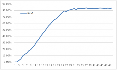 During network training, the VGG network was employed to build a 10-layer network and a 15-layer network, and the residual network (ResNet) was selected to build a 50-layer network. The three networks were tested in search for the model with the highest mAP in each network. The threshold was adjusted repeatedly during the test. The model performance was evaluated by precision, recall, and IOU. Each network was trained iteratively for 10,000 cycles, and a model was generated every 200 cycles. The experimental results are presented in Figures 7-9, respectively.