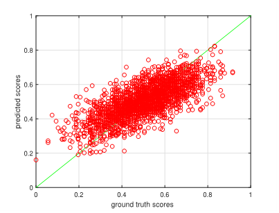 For each video in the dataset, the ground truth labels for the Big-Five personality traits and interview variable were given by real values that fit the range [0, 1]. We used mean accuracy to evaluate performance for each personality trait and the interview variable. This indicator was used in the previous challenge [6]. This is given by P=100´(1-MAE), where MAE is the mean absolute error over the tested video sequences.