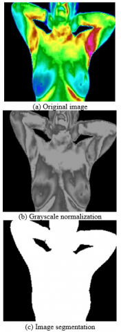 Most medical images are composed of a background and several targets. Doctors or computer automatic detection programs normally judge or process the main targets. Therefore, the task after greyscale normalization is to extract the targets from the chest infrared thermogram, i.e., remove the background, by a certain method. The most common way to complete the task is thresholding. This paper segments the original image through global thresholding, and optimizes the threshold iteratively. The specific steps are as follows: