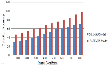 The detection accuracy rate of the proposed model is high that represents the performance levels of the model. The detection accuracy levels of the proposed and traditional model are indicated in Figure 10.