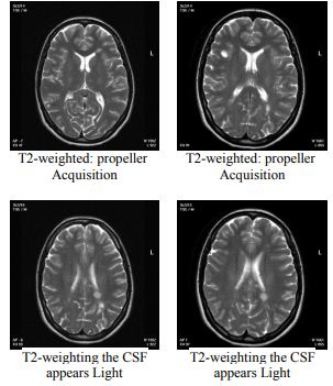 MS relapses cause an annual rise in brain T2 lesion volume of approximately 5-10%. Inflammatory activity cannot be reliably detected with gadolinium-enhanced T1-w imaging. It is a progressive process that gets worse with the length of the dispute and proceeds at a rate of 0.7 to 1.5 percent of brain loss each year in this condition. The samples of MRI images of MS are shown in Figure 1.